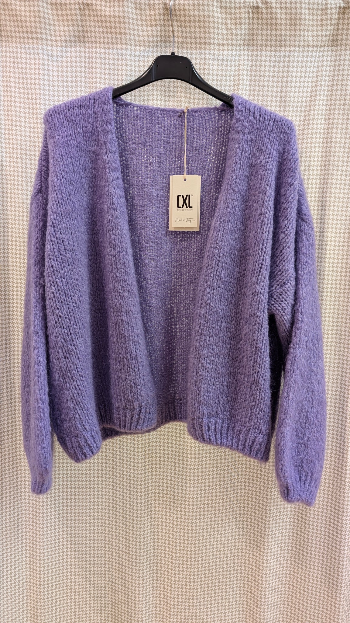 Diese offene Strickjacke ist im leichten Blousonschnitt . Sie hat einen Wollanteil und lässt sich super zu Kleidern, Röcken und auch Hosen tragen.