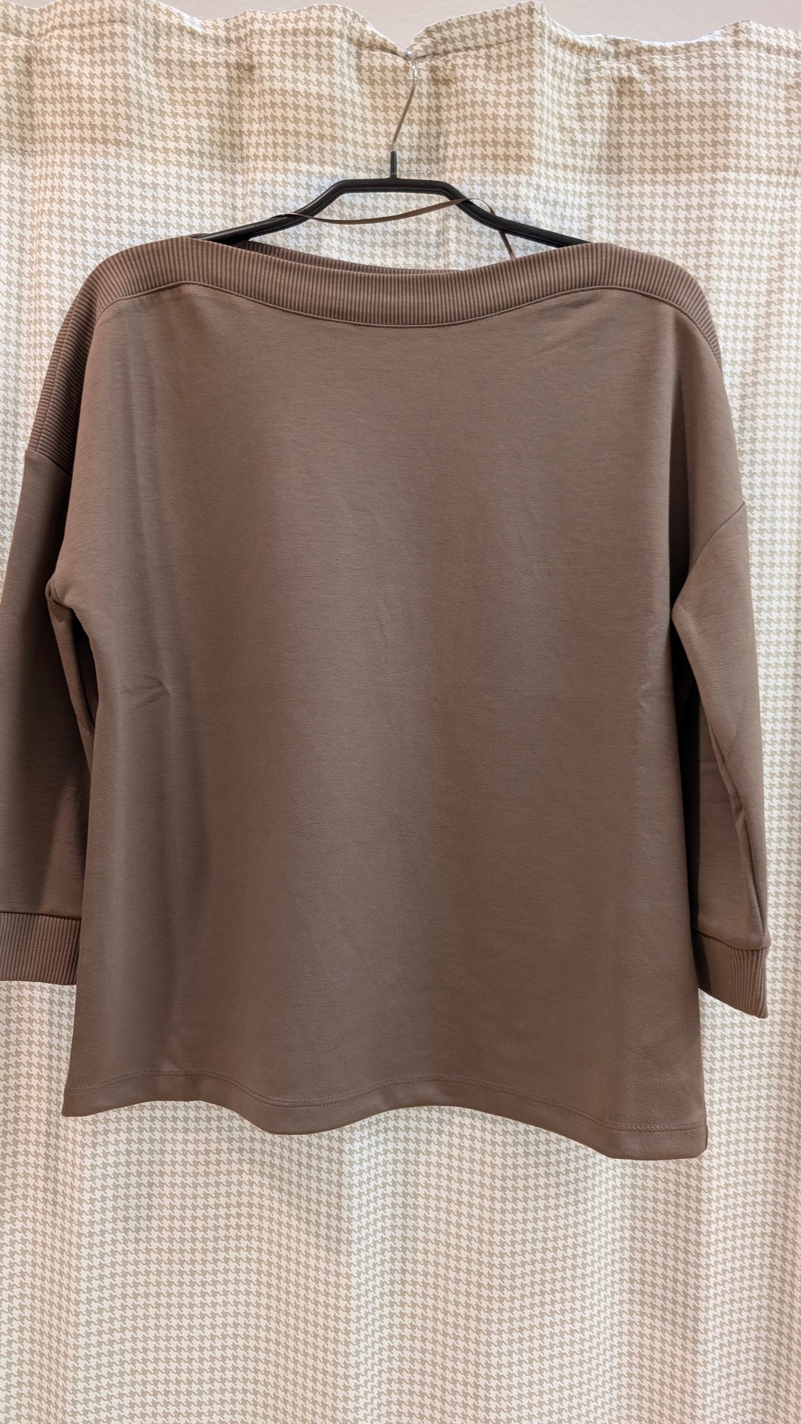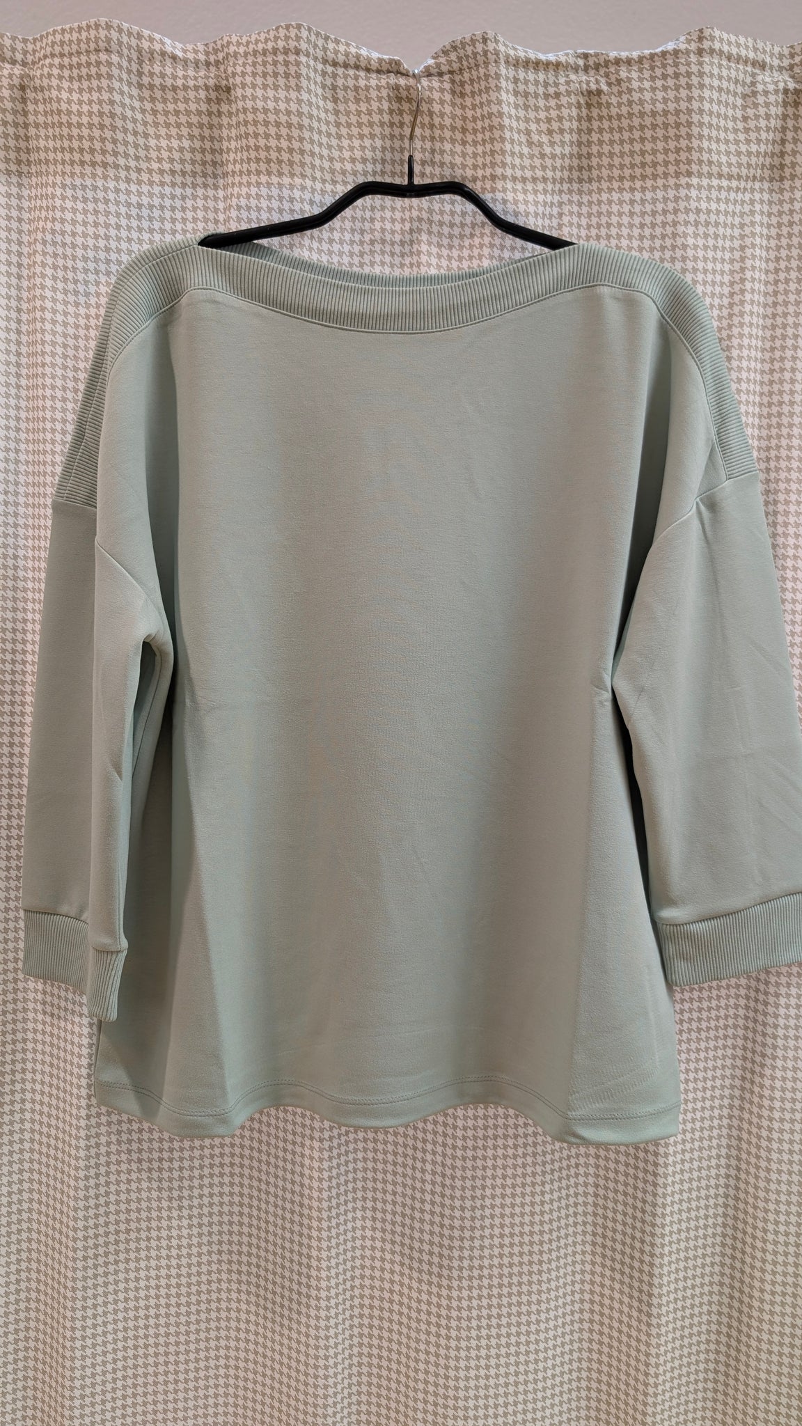 Dieser U-Bootpullover mit 3/4 Armlänge hat als Eyecatcher alle Abschlussbündchen in gerippter Optik !